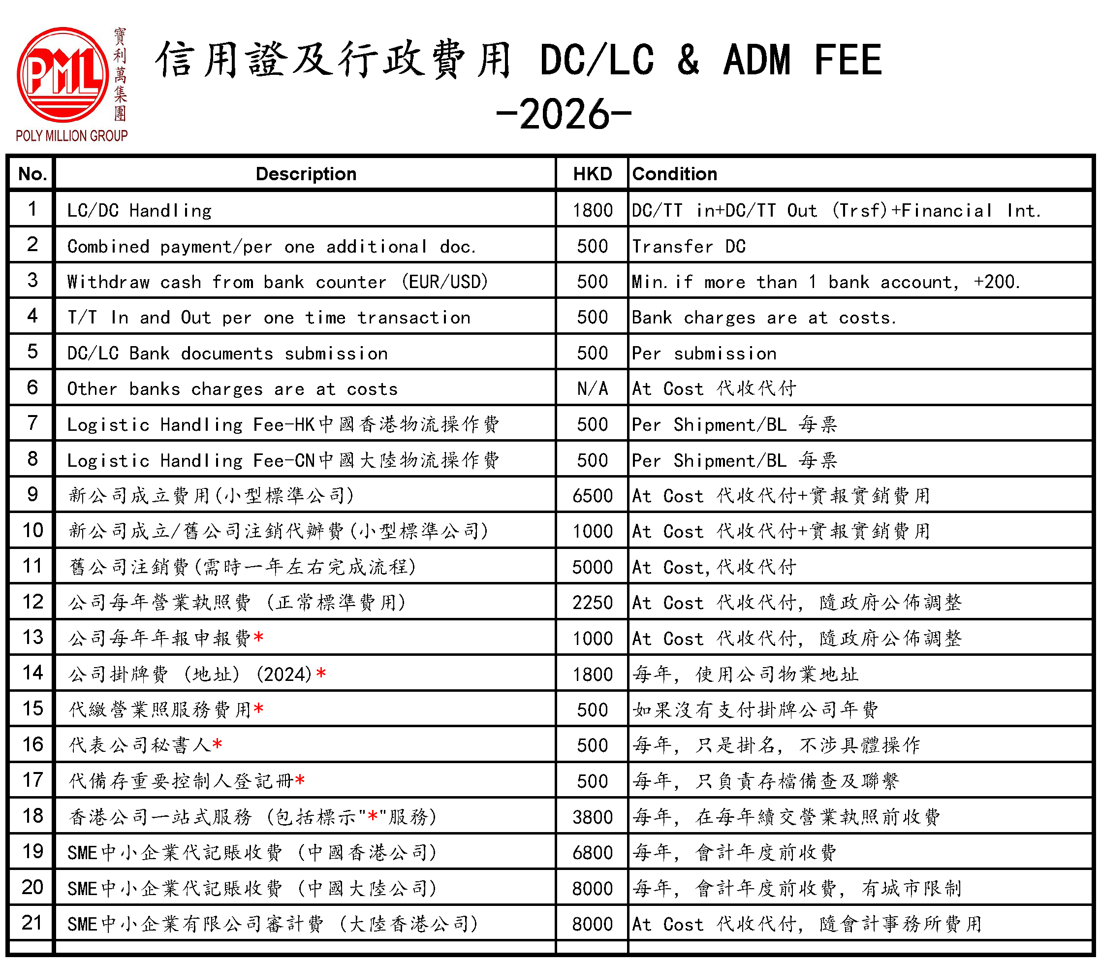 2026年更新信用证及行政费用