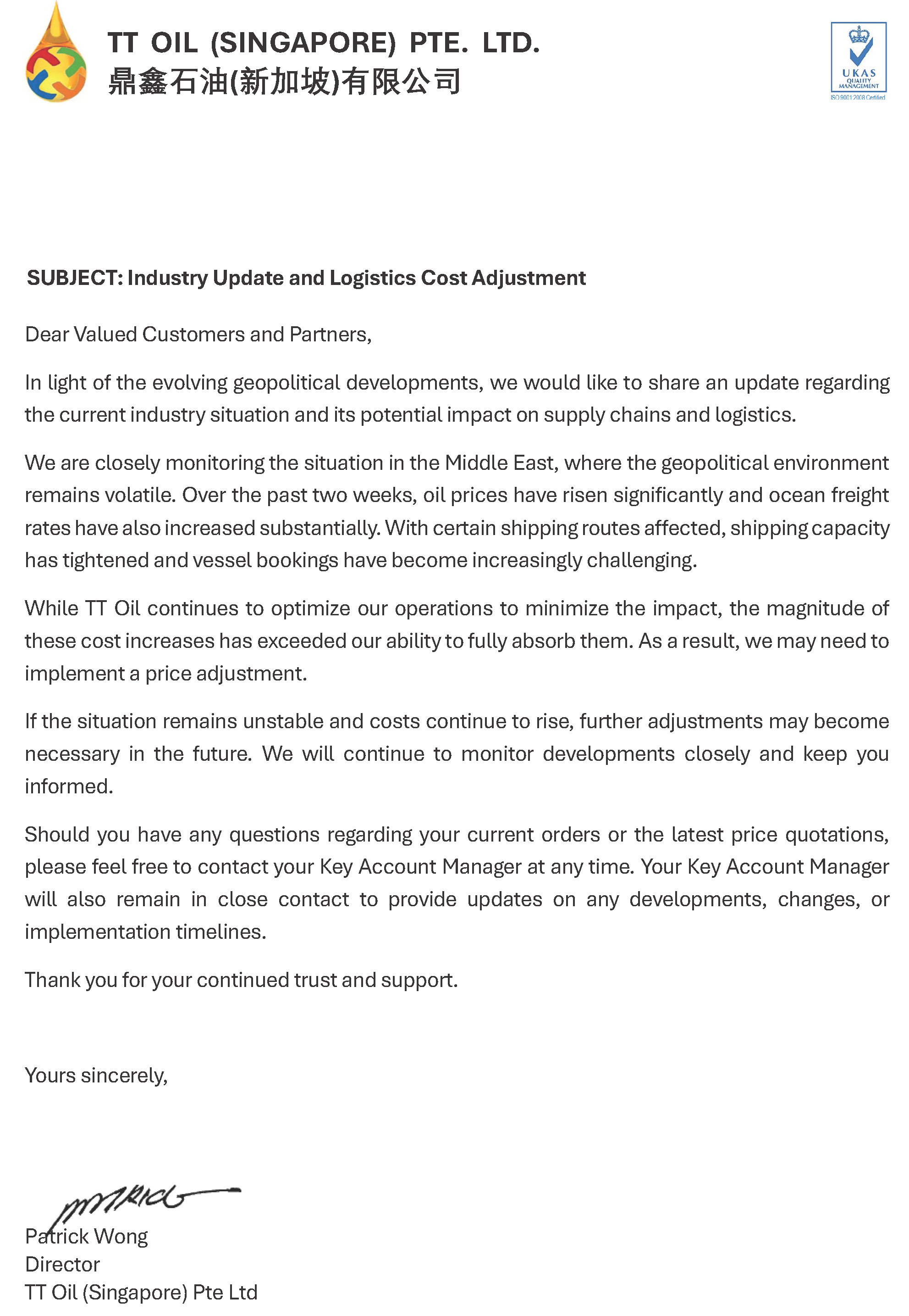 Industry Update and Logistics Cost